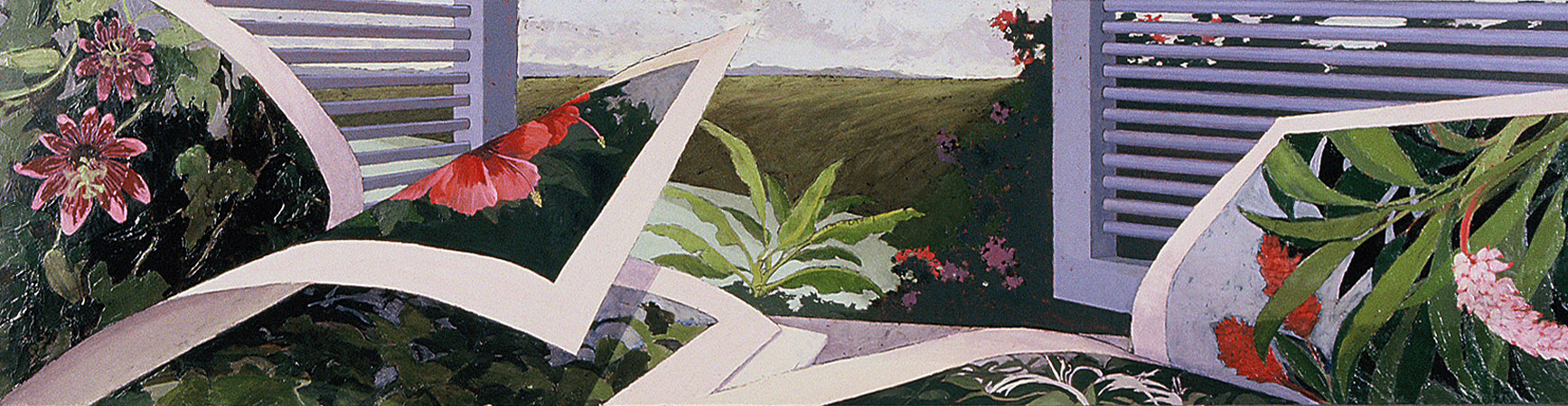 Open Books with Dominican Landscape, oil on panel, 24" x 96", 2003 (private collection) < previous | next > < back to Oils